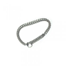 Collare realizzato con catena e tre anelli in ferro cromato. Mettendo in tiro l'anello centrale permette di realizzare un collare a semi strozzo.