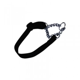 Collare realizzato con catena e due anelli in ferro cromato. Facendo passare la catena all'interno di un anello permette di realizzare un collare a strozzo.