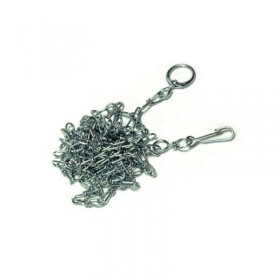 Catena da cortile in ferro cromato. La lunghezza dei 3 metri rende la mobilità del cane elevata, naturalmente si può aumentare la lunghezza aggiungendo altre catene. Alle estremità presenta un moschettone a sgancio manuale e un anello per ancoraggio.